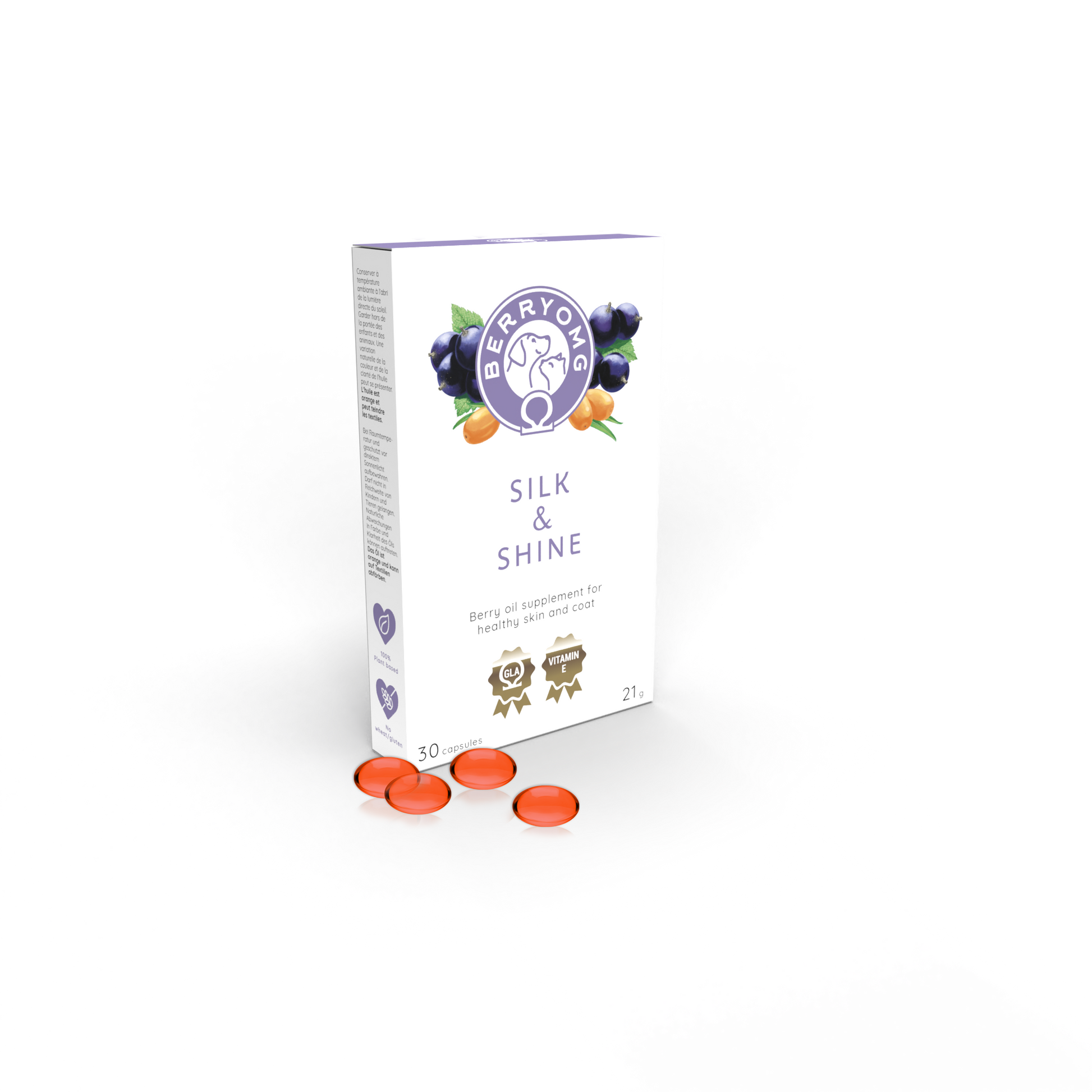 Til að byggja upp heilbrigt varnarlag húðarinnar þurfa hundar (og kettir) sem glíma við húðvandamál eins og kláða og þurrk að fá bæði omega-3 og omega-6 fitusýrur. Berjaolíur – eins og olía úr fræjum sólberja, títuberja og hafþyrnis – eru náttúrulega ríkar af þessum fitusýrum, og hver berjatýpa hefur sína einstöku samsetningu.