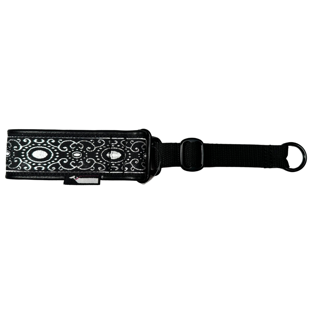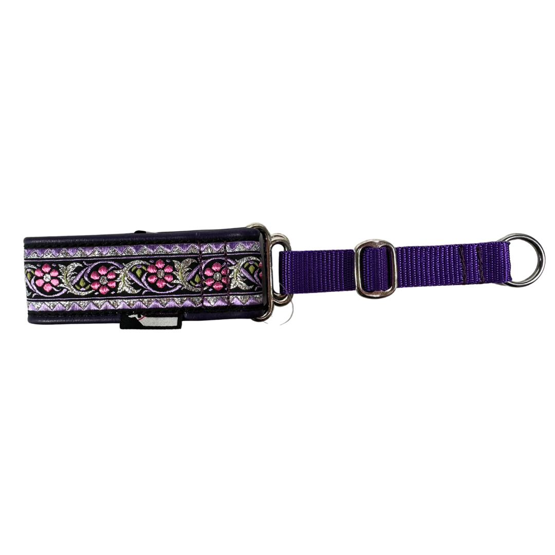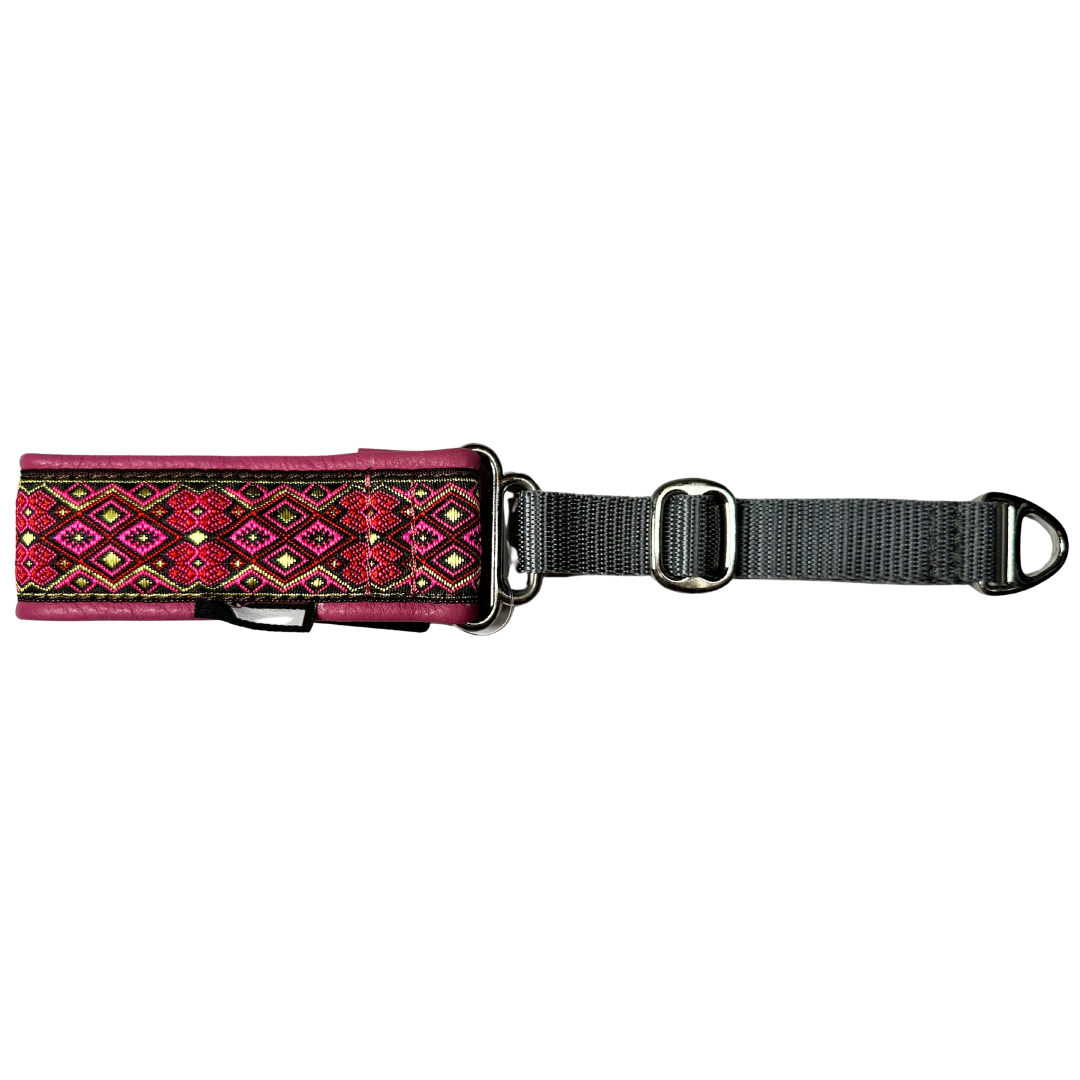 Ól úr mjúku leðri, skreytt með litríkum textíl borða. Leðrið rennur vel á feldi hundsins og því eru ólarnar sérstaklega hentugar fyrir feldhunda til að lágmarka að flækjur myndast á ólarsvæðinu.