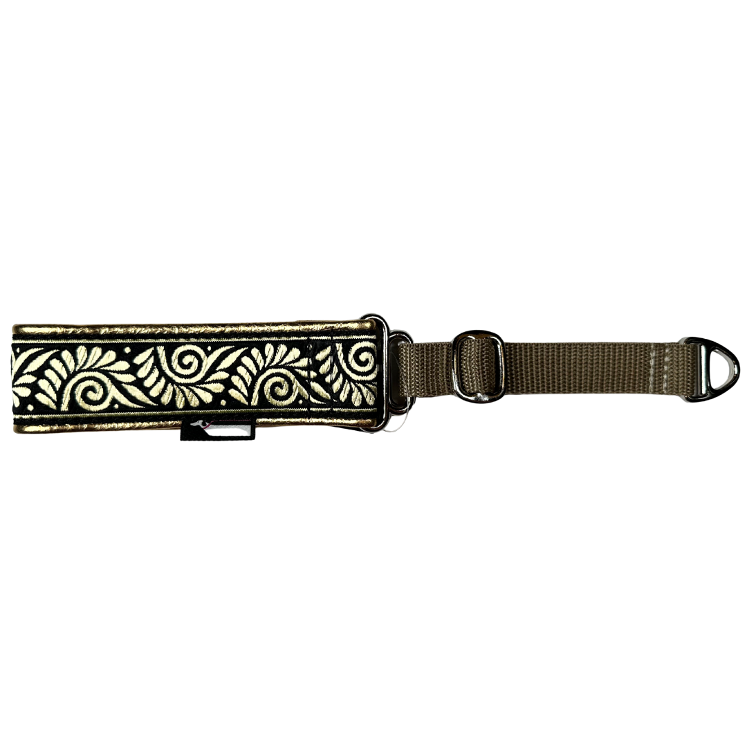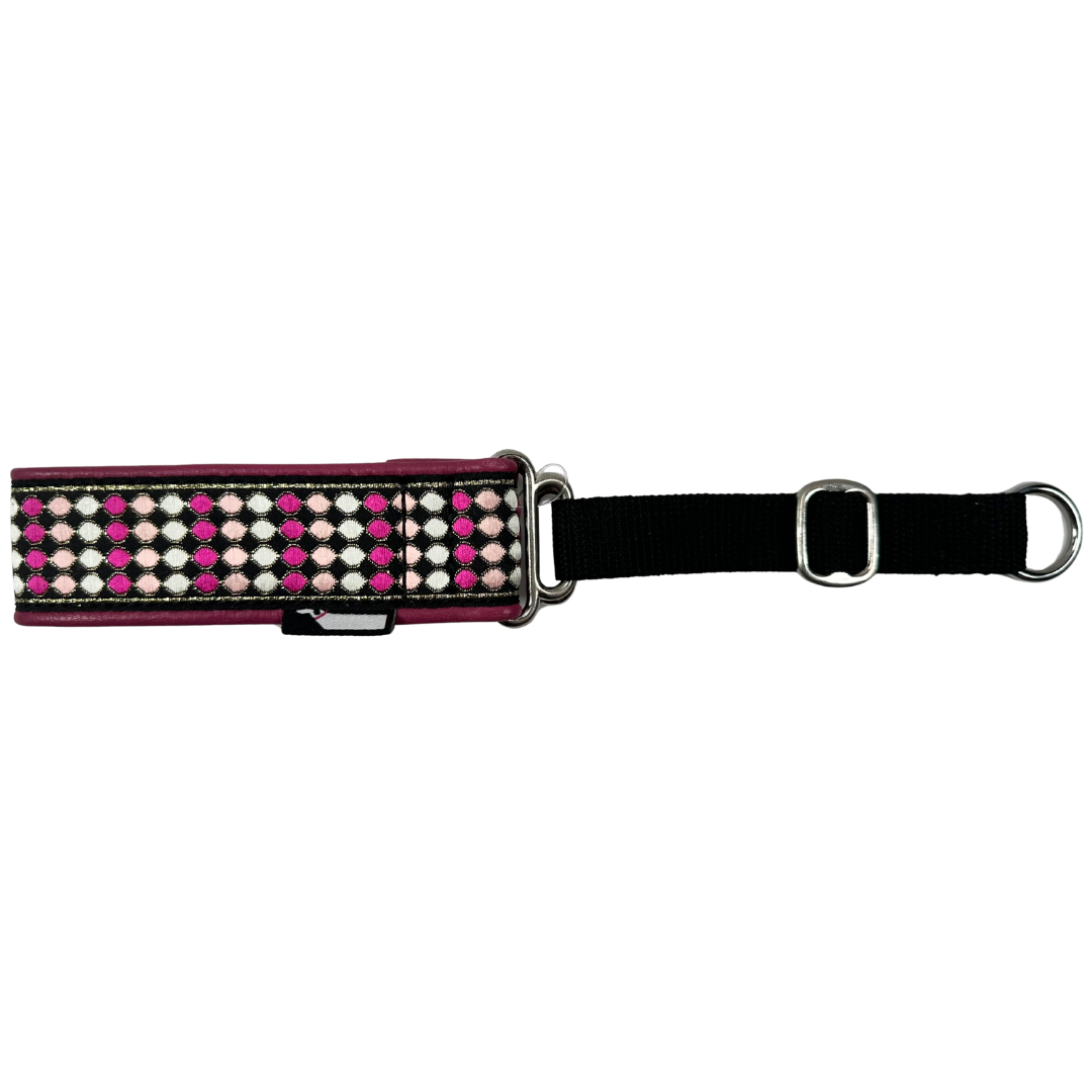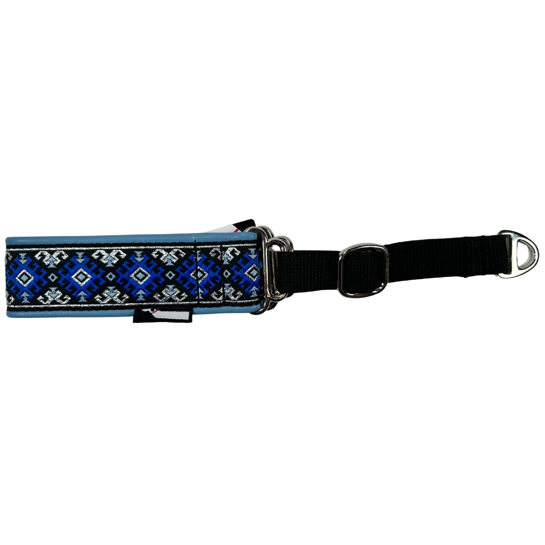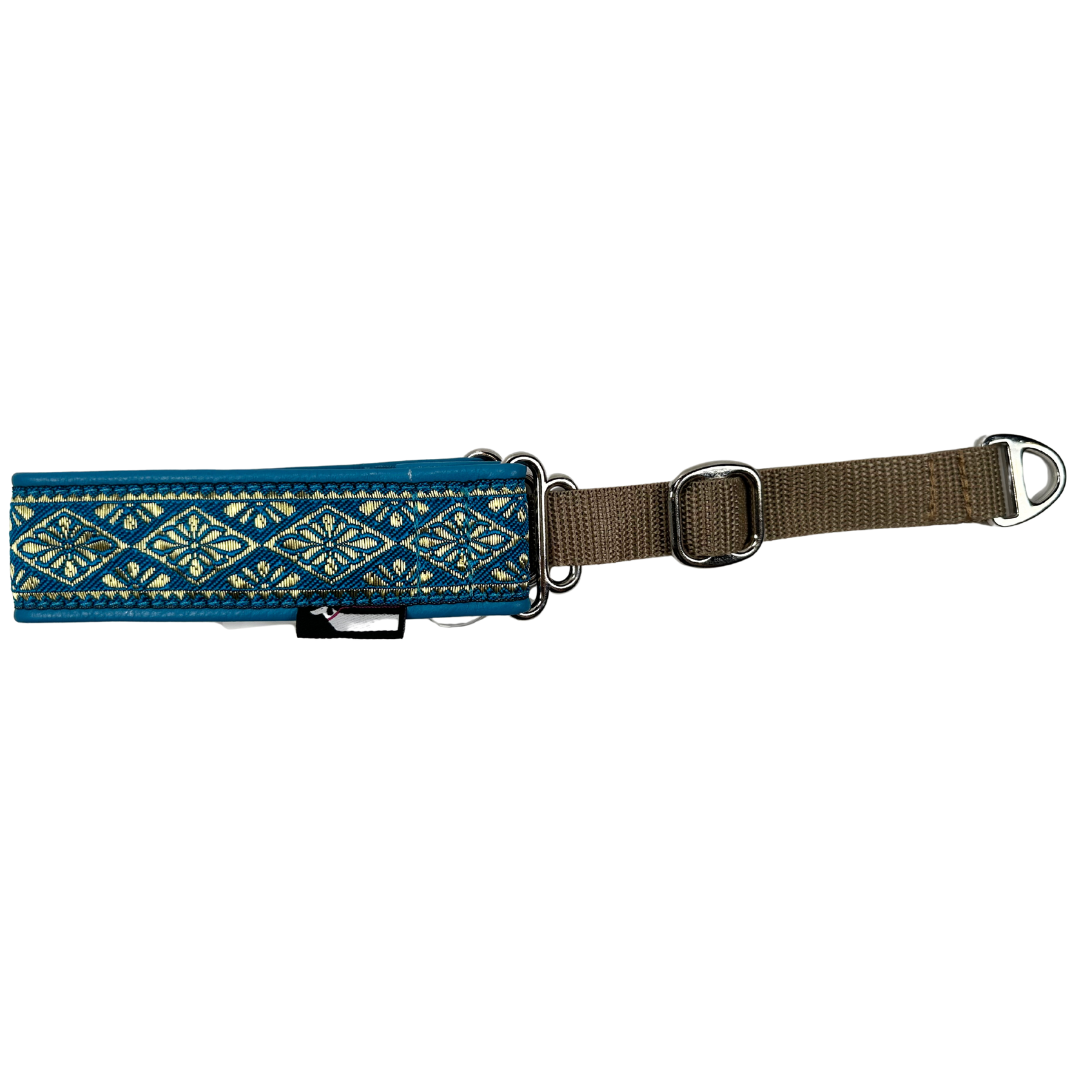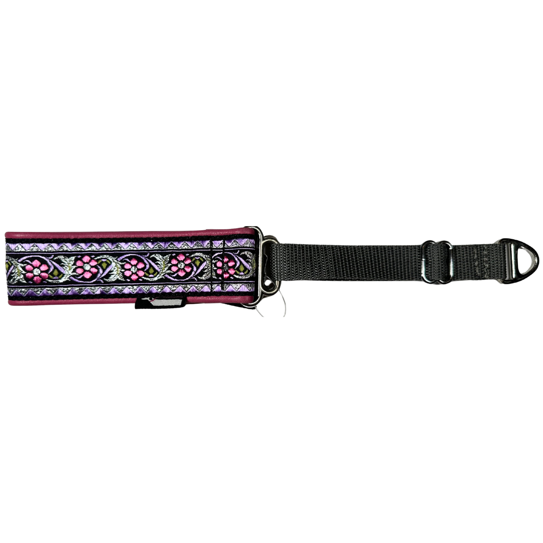 Ól úr mjúku leðri, skreytt með litríkum textíl borða. Leðrið rennur vel á feldi hundsins og því eru ólarnar sérstaklega hentugar fyrir feldhunda til að lágmarka að flækjur myndast á ólarsvæðinu.