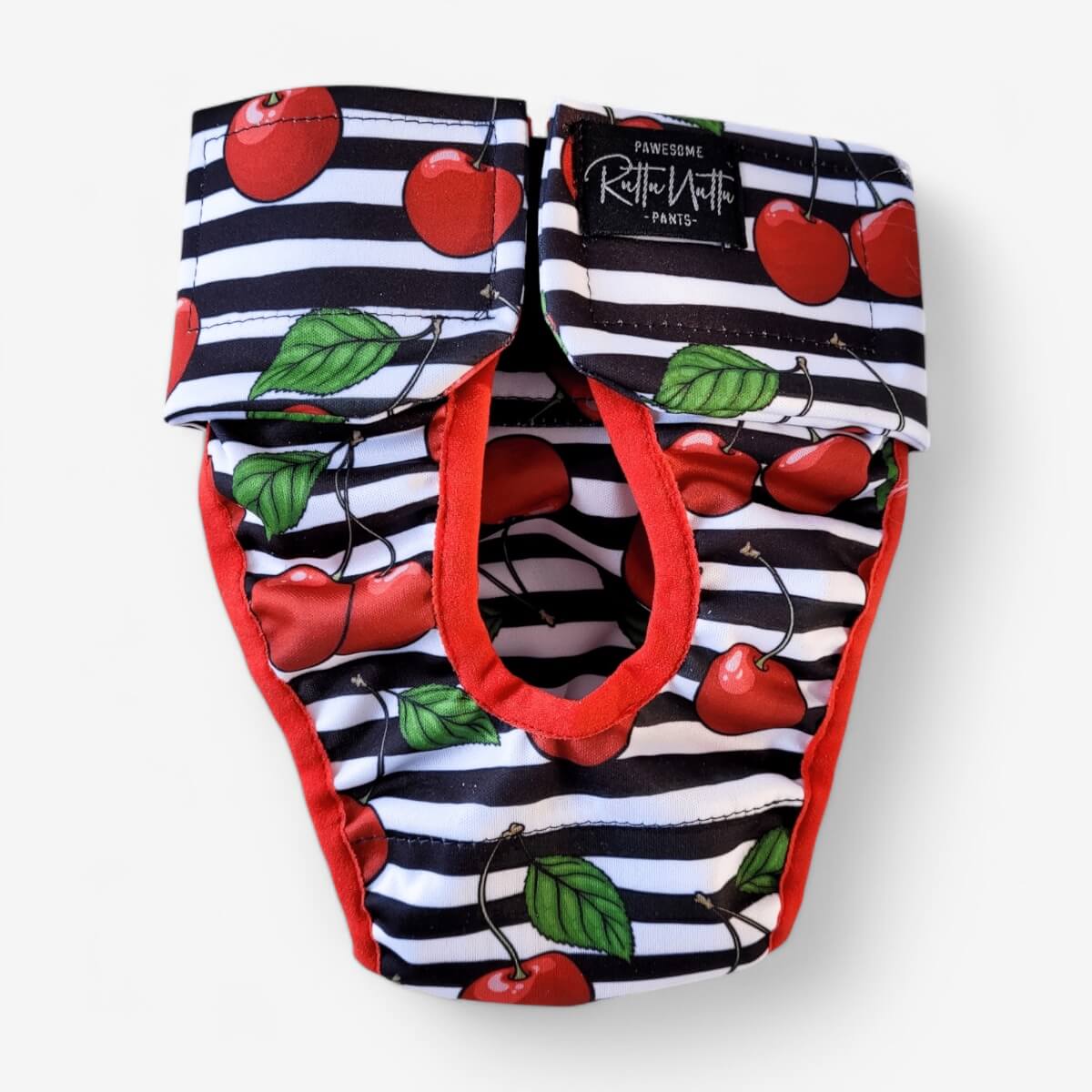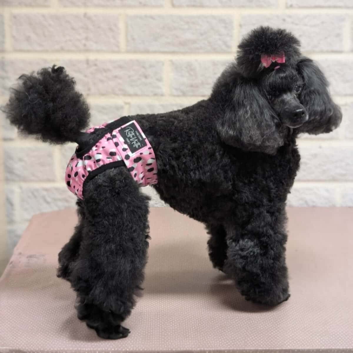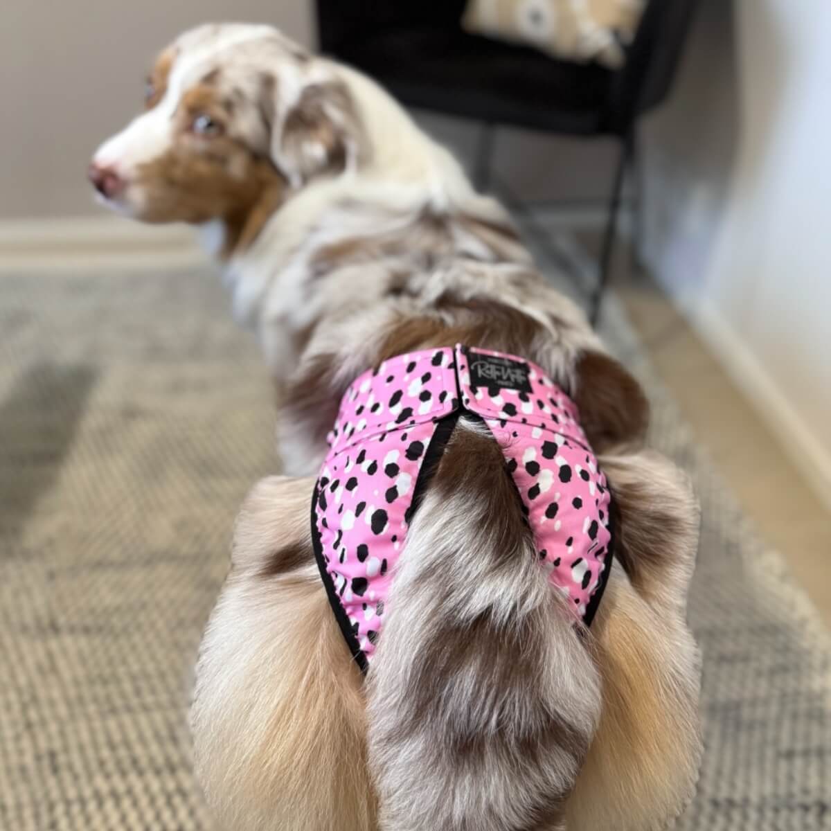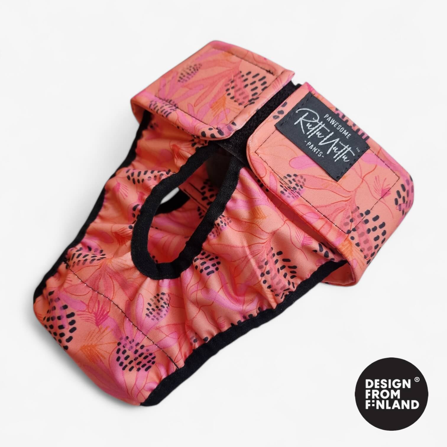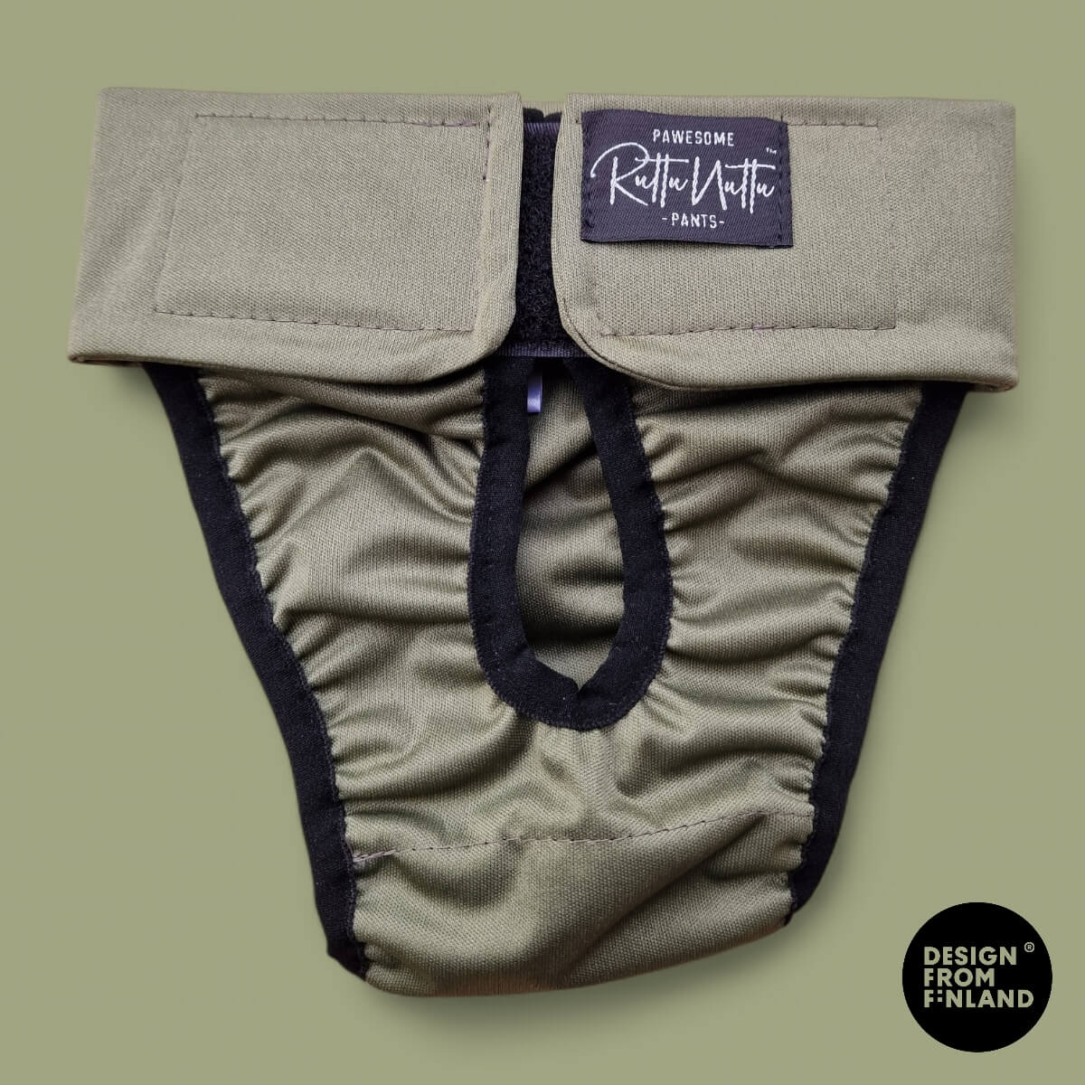 Lóðabuxur úr mjúku og teygjanlegu efni. Einfalt er að klæða tík í buxurnar þar sem þær opnast alveg og eru festar saman með frönskum rennilás. Buxurnar sitja vel og örugglega á sínum stað.