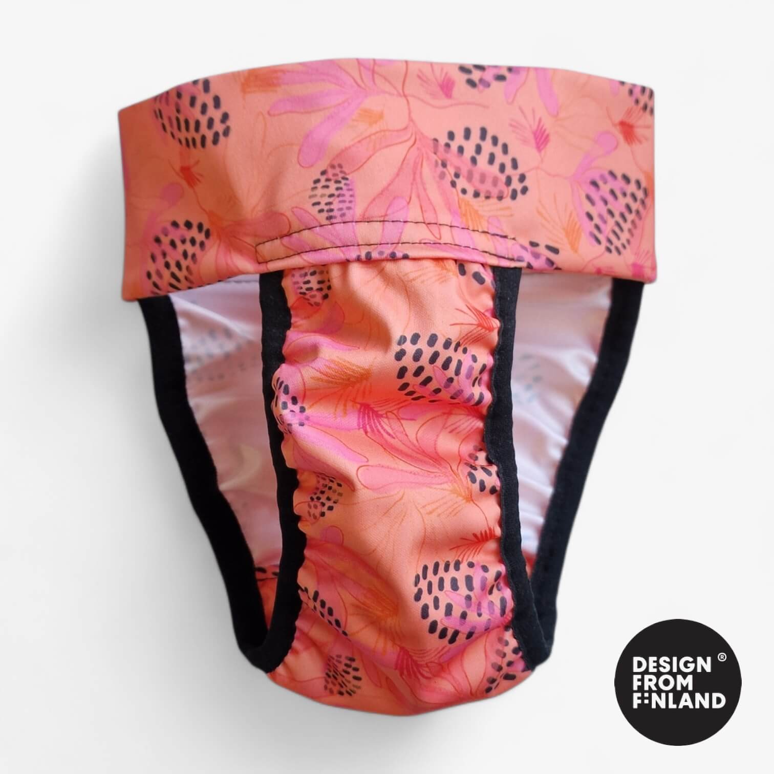 Efnið er teygjanlegt, vatnsfráhrindandi og andar vel. Innra lagið er mjúkt og þægilegt viðkomu. Til að auka vernd er hægt að nota innlegg sem þarf að skipta um eftir þörfum til að tryggja þægindi og hreinlæti.