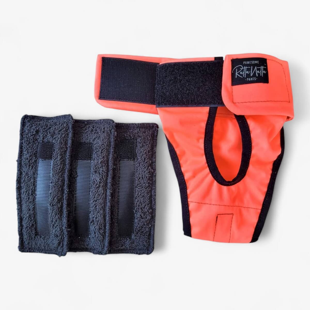 Efnið er teygjanlegt, vatnsfráhrindandi og andar vel. Innra lagið er mjúkt og þægilegt viðkomu. Til að auka vernd er hægt að nota innlegg sem þarf að skipta um eftir þörfum til að tryggja þægindi og hreinlæti.