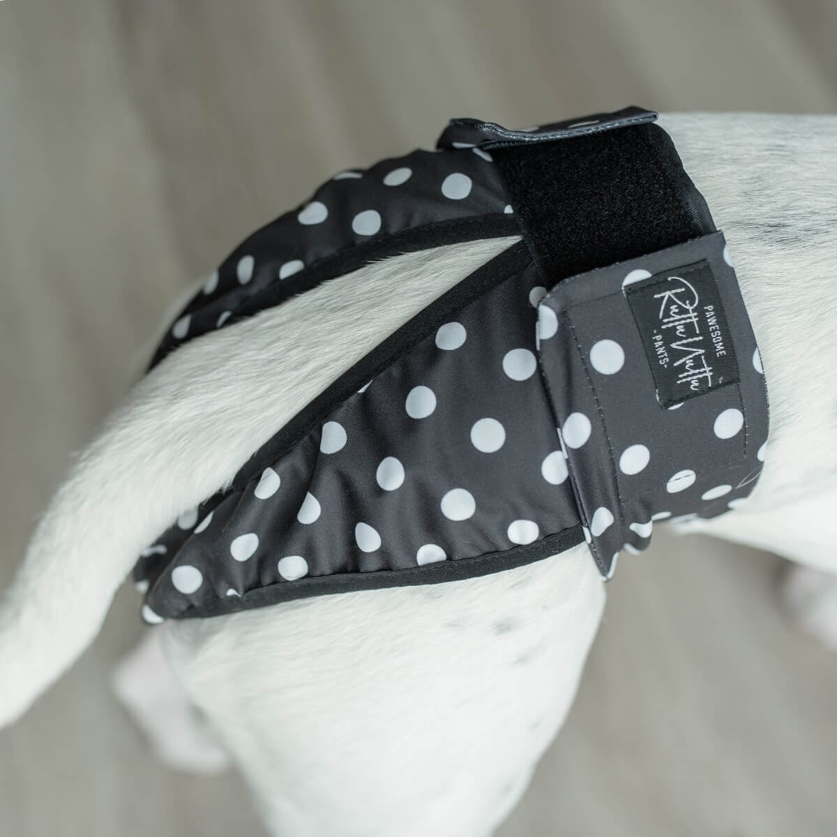 Lóðabuxur úr mjúku og teygjanlegu efni. Einfalt er að klæða tík í buxurnar þar sem þær opnast alveg og eru festar saman með frönskum rennilás. Buxurnar sitja vel og örugglega á sínum stað.