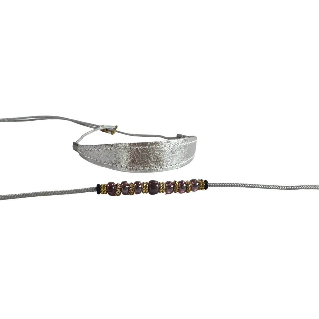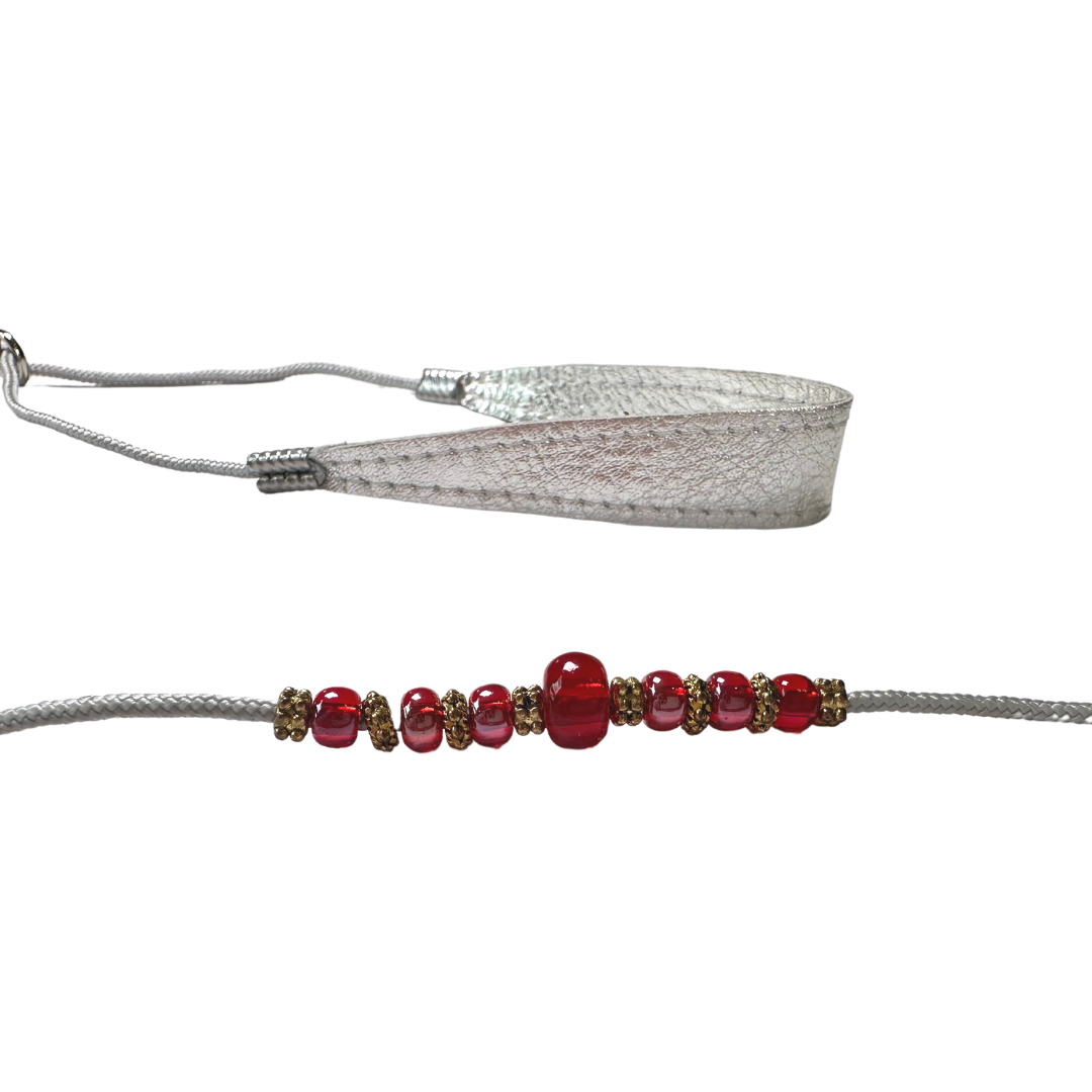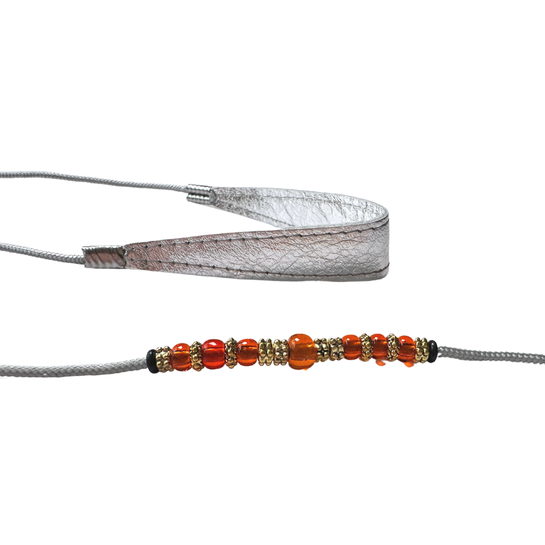 Nælontaumur með leðuról og perlum. 120 cm. Tilvalið fyrir smáhunda.