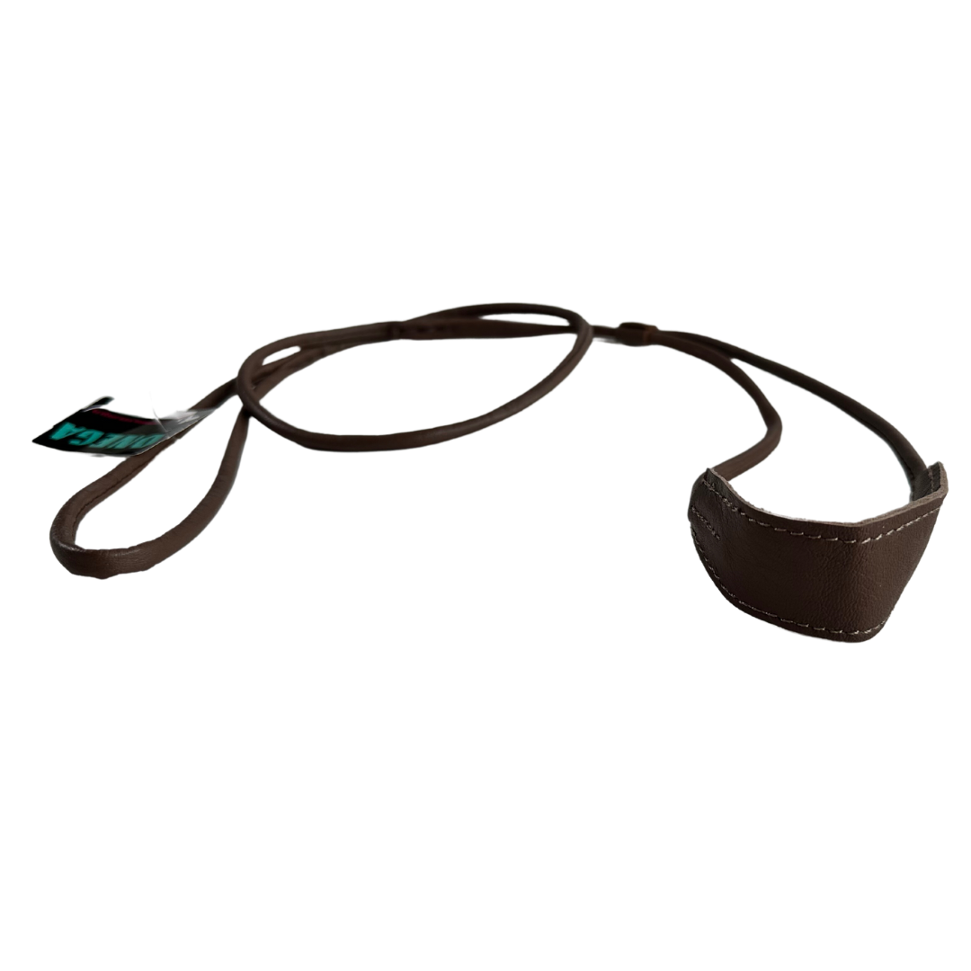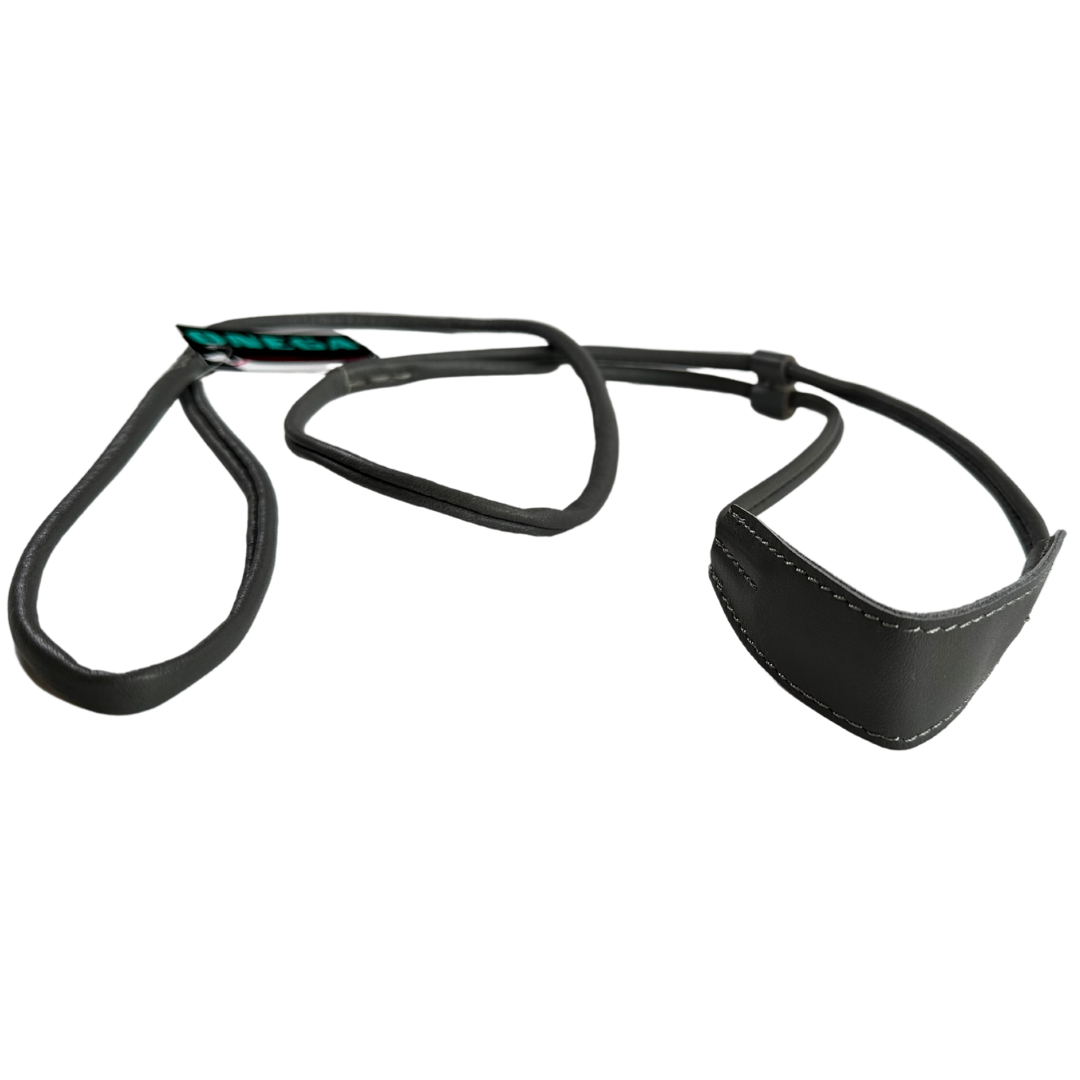 ONEGA sýningataumur úr mjúku leðri sem er saumað í hring. Taumarnir eru með hálsstykki.